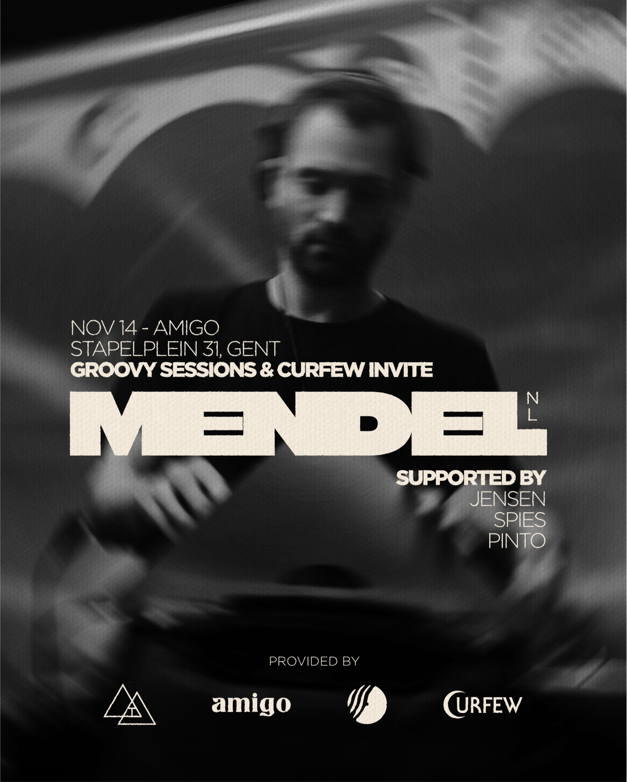 Groovy Collective and Curfew join forces to light up the intimate basement of Amigo at Dok-Noord.We’re inviting Mendel, the Amsterdam born selector known for fusing boogie, disco, house and electro into deep, soulful journeys. With roots in Surinamese musical culture and a reputation built on memorable sets at parties like Dekmantel and Beyond, Mendel is a true digger whose selections create pure dancefloor joy.